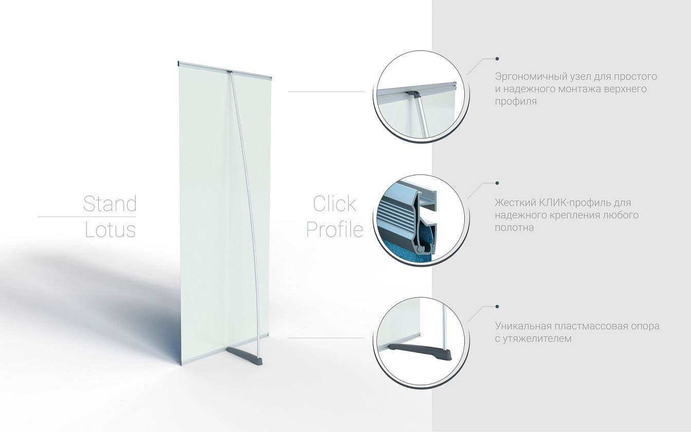 Существуют металлические L-баннер мобильные стенды из сатинированного алюминия (их обычно приобретают клиенты, которым нужен незаурядный, современный и внешне привлекательный вид). Минусы в таких стендах отсутствуют вовсе!