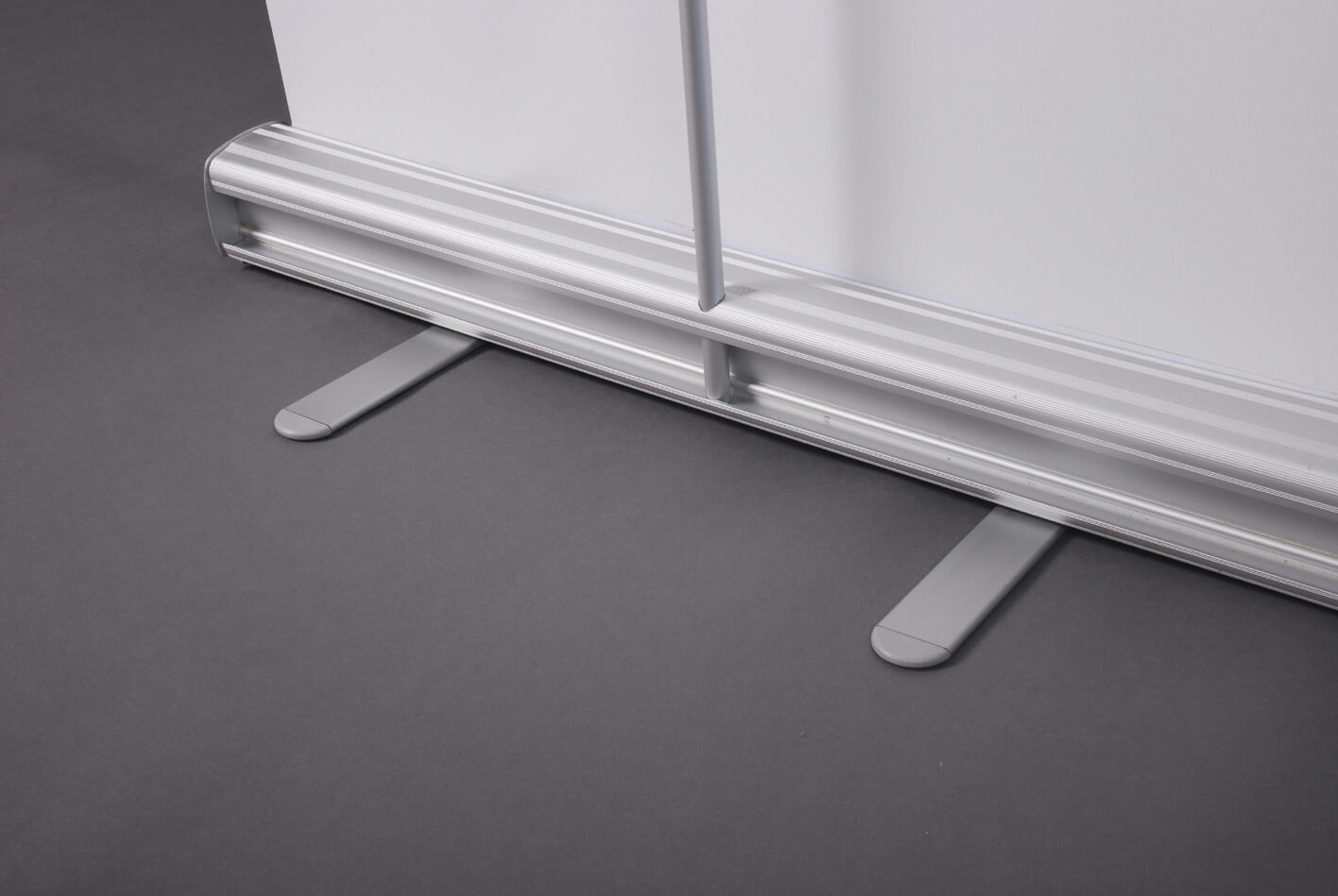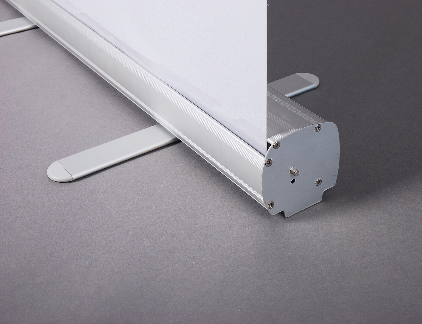 Стенд ролл ап стандарт 85х200 представляет собой стандарт качества ролл апп стенда с автоматическим скручиванием фотополотна. В стендах применен новый роллерный механизм с усиленной пружиной. Сплав корпуса стал более легким и прочным, вес конструкции 4 кг. Конструкции в наличии на складе в Москве. Конструкция стандартная, динамического ролл ап стенда