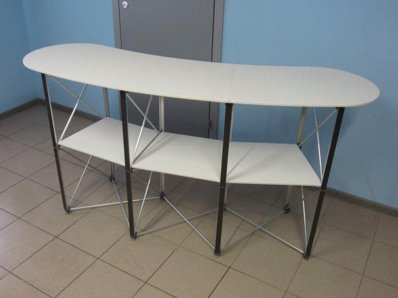 Размер комплекта в собранном виде: 1 конструкция — 59x13x13 см, 2 столешница — 68x49x4 cv